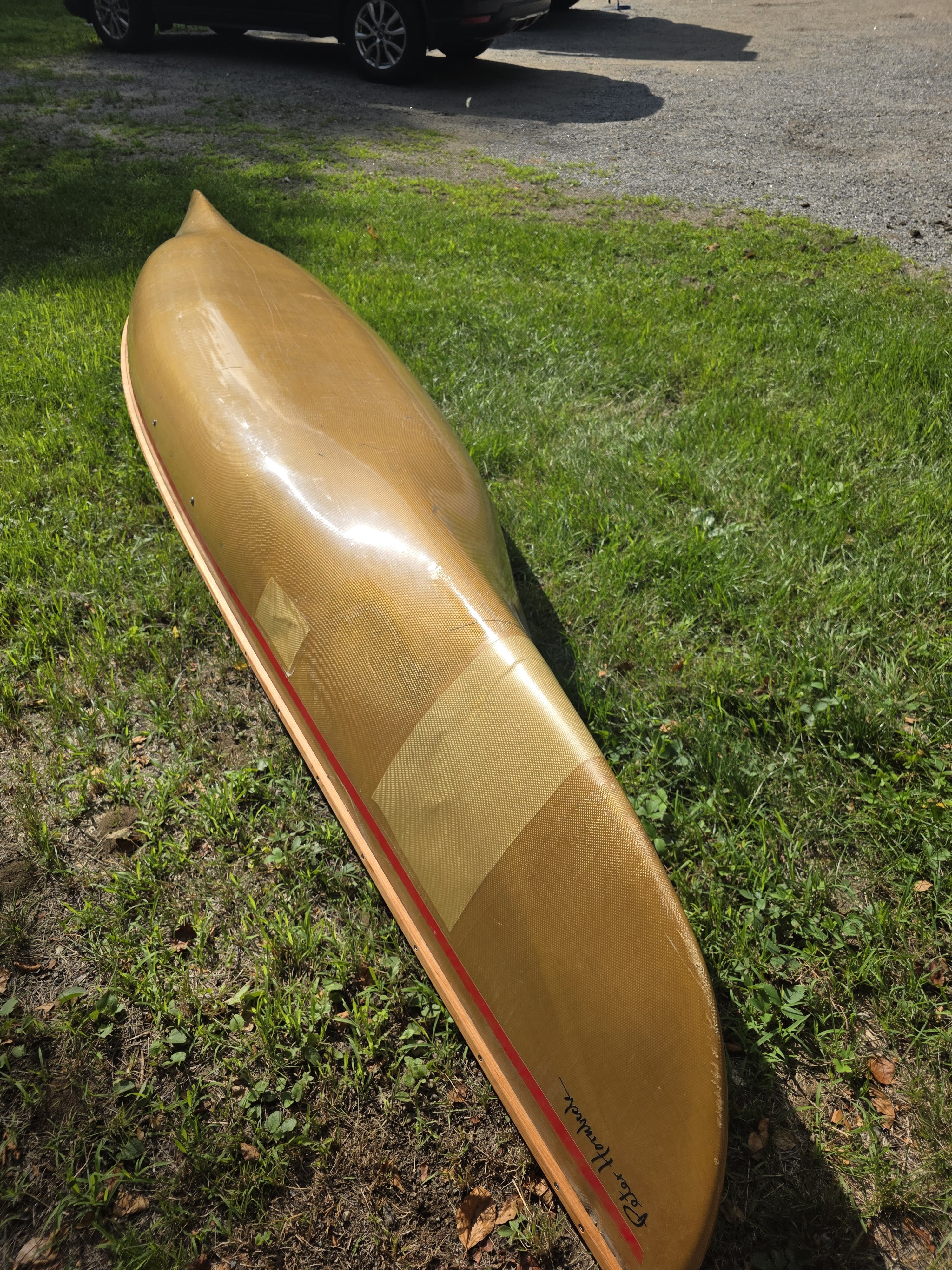 It’s been a while since my last post. Not much has been happening to write about. I don’t want to turn this into a daily journaling activity. Hornbeck was able to patch the canoe. It definitely looks patched. However, the hull is back to the correct shape. She is worthy of water once again. It was nice not having the boat wrapped in cellophane to travel down the highway.
