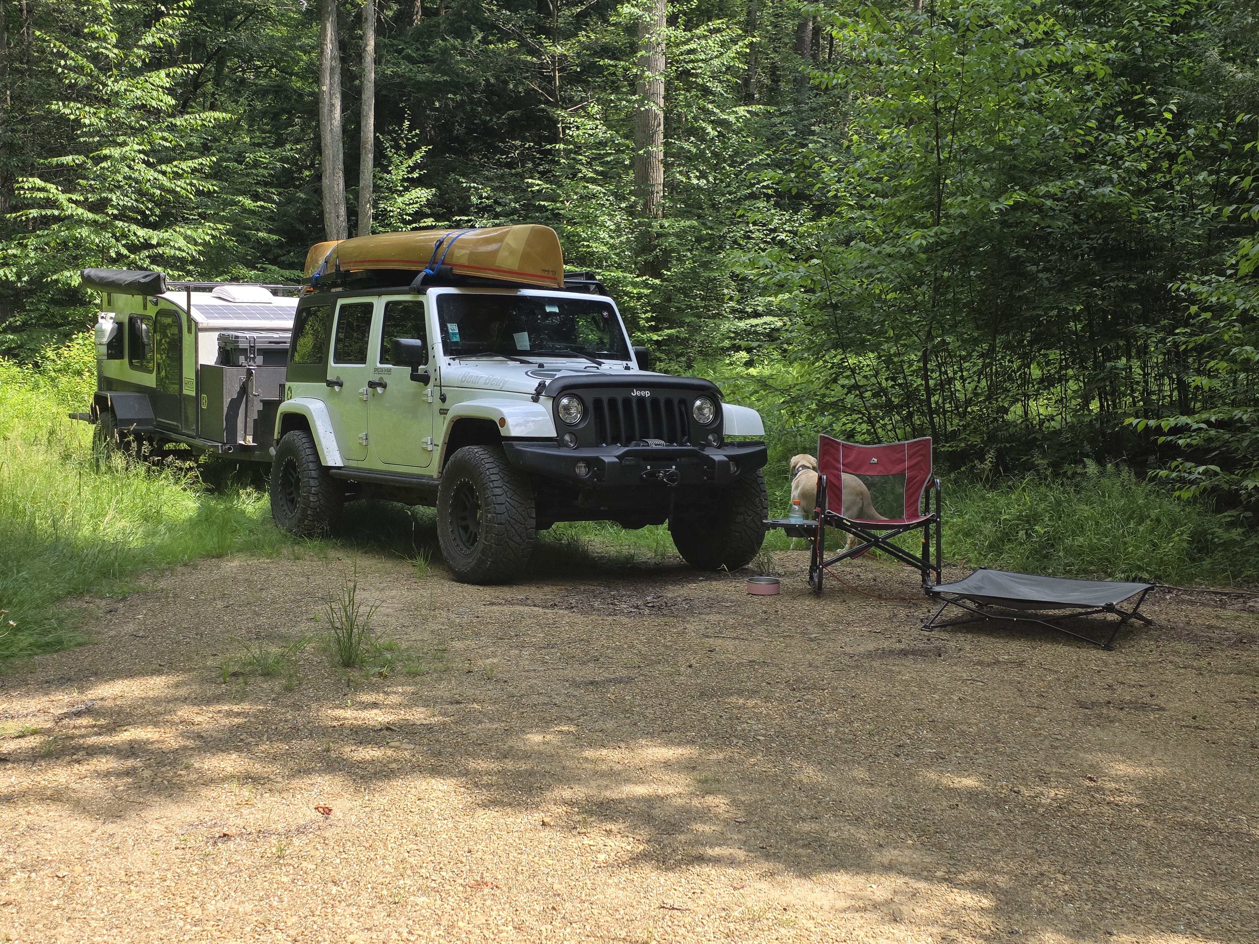 Nana and I are currently on the Keweenaw Peninsula in Michigan’s Upper Peninsula. We are camping at the beautiful High Rock Bay area. We will be here for a couple of weeks then travel somewhere near the Marquette, Michigan area. I ordered a custom cover for the canoe from Red Leaf Designs. Kevlar is sensitive to UV and can discolor. From what I have heard, with enough continuous time in the sun, the Kevlar will start to break down. The Red Leaf cover is custom made to fit the canoe. It is designed to protect from UV rays and not flap around even at highway speeds. I am on the road full time. The boat is always on top of the Jeep. I thought the cover would be a good insurance policy for the boat. They are made just south of Marquette. I will pick it up while in the area. This will save some money on shipping.
