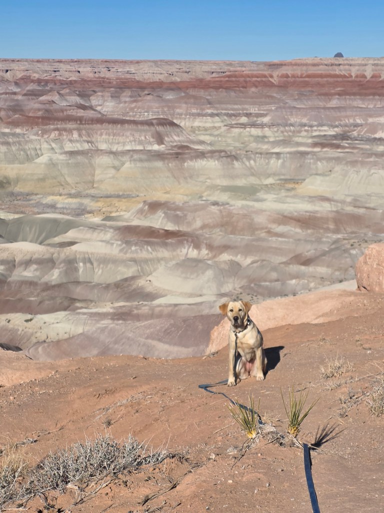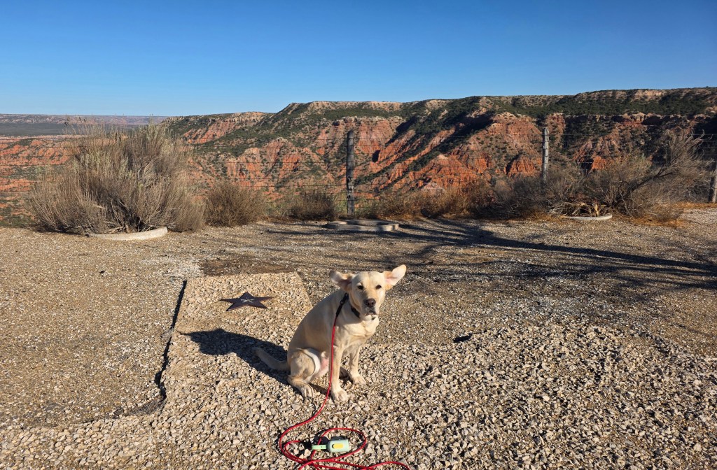 - New Mexico: This was easily Nana’s least favorite stop. The ground was covered in sharp, pokey vegetation, and she initially refused to walk on it. I put her buckskin booties on, which made things tolerable enough that she took off running and burned off some pent-up energy. At one point she got out of sight, so I checked my new tracker and saw she was about a half mile away — and not moving. When I reached her, it was clear why: all four booties had come off while she was running. We took a longer route back using ATV trails and roads with less harsh foliage, and there was no wandering that evening.