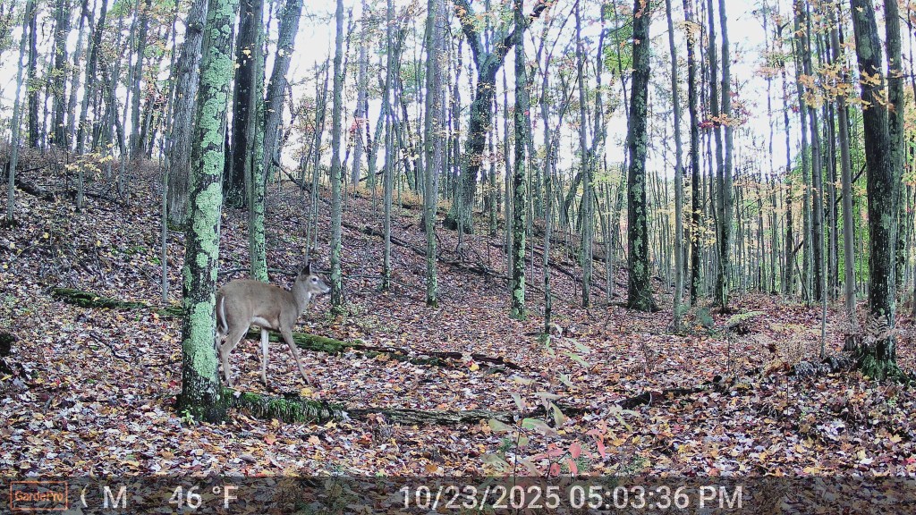 I first set the camera up while camping in Hoosier National Forest. I was parked near a small pond and was convinced deer had to be coming down there to drink.